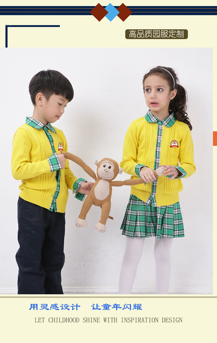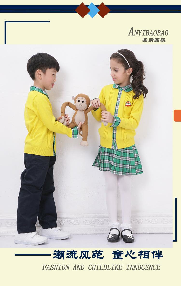 集中幼儿园园服,小学生校服 书包,幼儿园床上用品及幼师服的研发设计。精选上等定制优质面料,确保园服不缩水、不变形、不起球、抗皱性强,所有园服采用包边包缝的一线品牌工艺,增强耐撕裂强度。厂内配备的面料检验设备我们提供专业的园服校服定制,可根据客户的个性化需求设计生产,欢迎广大客户来图来样洽谈合作。
